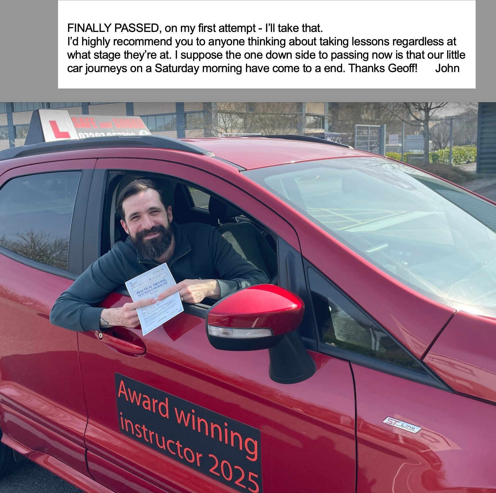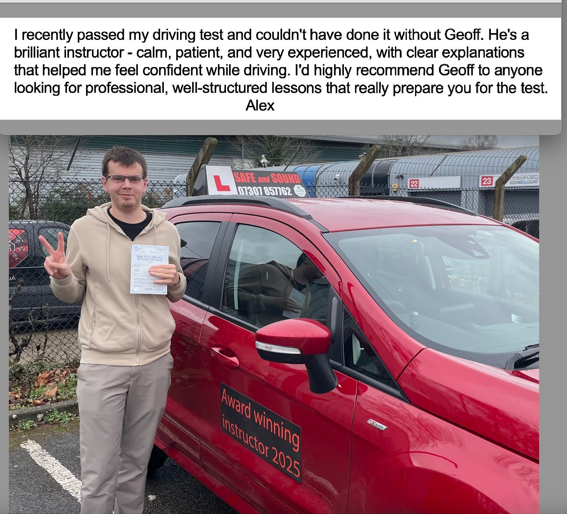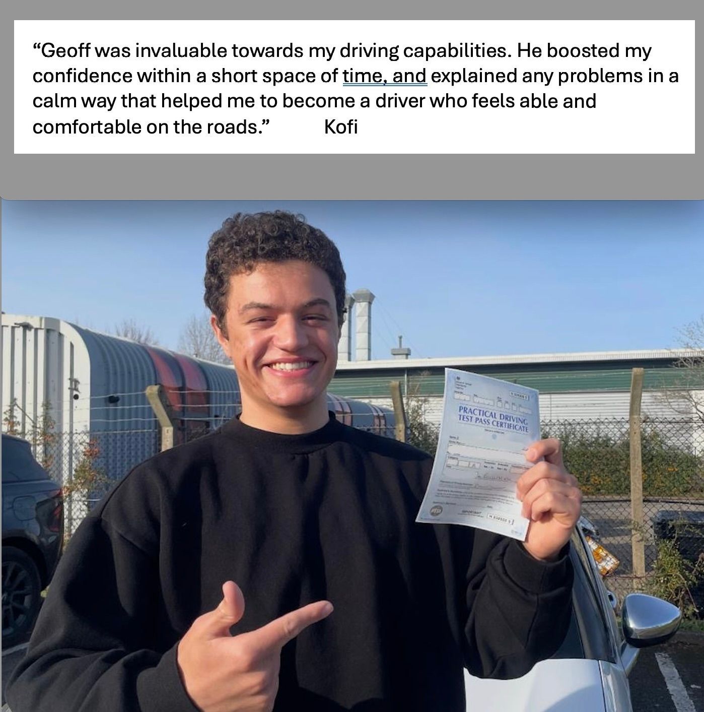 “Driving has always been a bit of an ordeal for me and I was super nervous before my test. Geoff was amazing at putting me at ease and very fair. Thank you Geoff!"