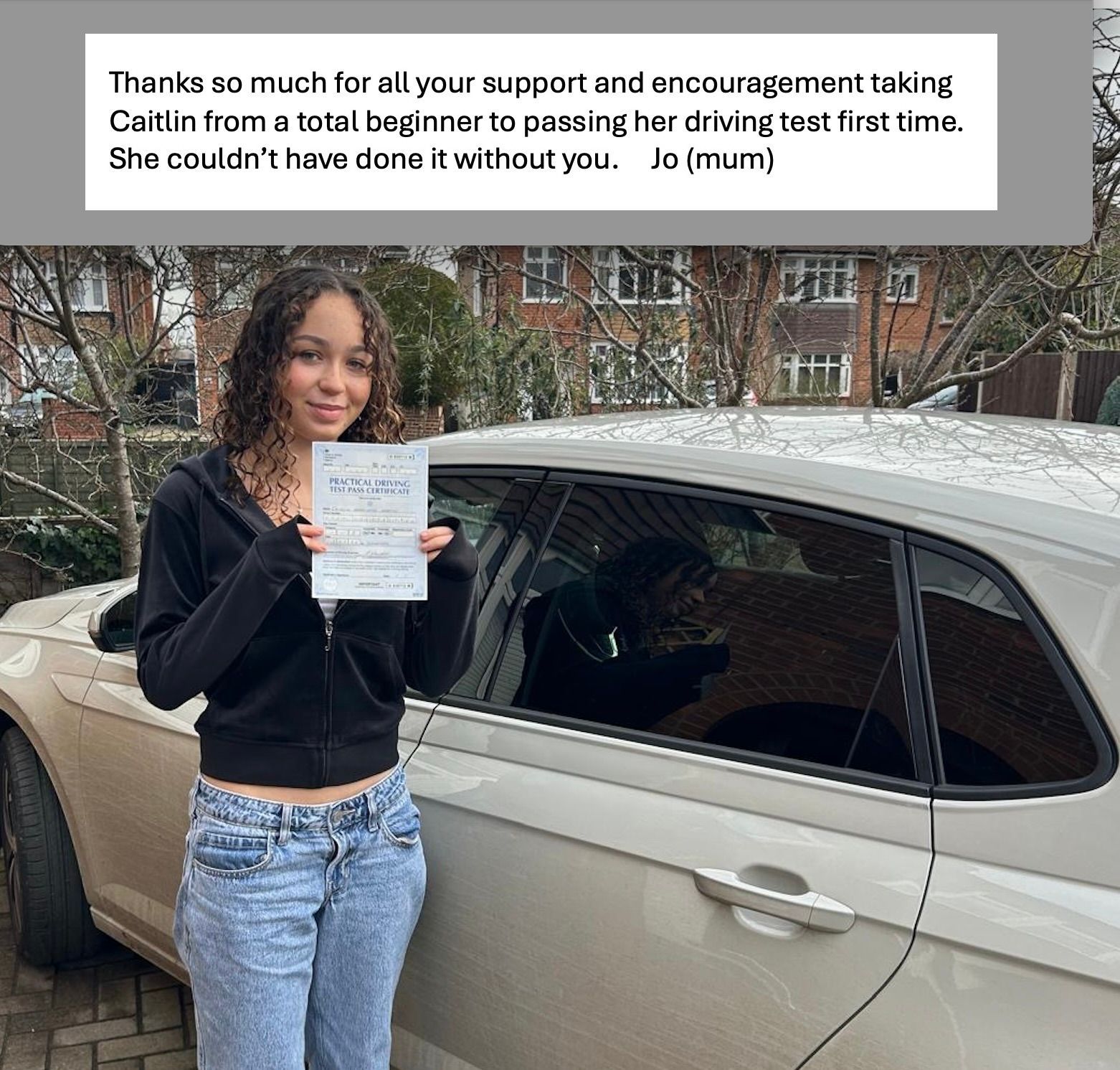 “Passed the other day thanks to Jeff the examiner at Guildford, he was the loveliest man and really helped me fell calm and confident despite my nerves on my 3rd test. “
