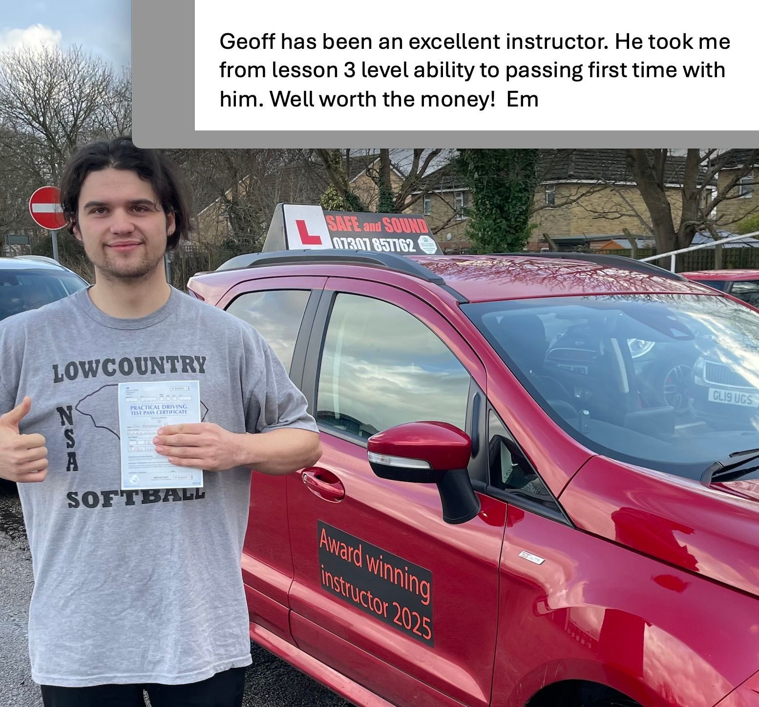 “The last examiner was however, in a different league. We are not saying this due to the pass, but his manner and encouraging words really put my son at ease and enabled him to drive at his best. Well done Geoff the examiner concerned!”