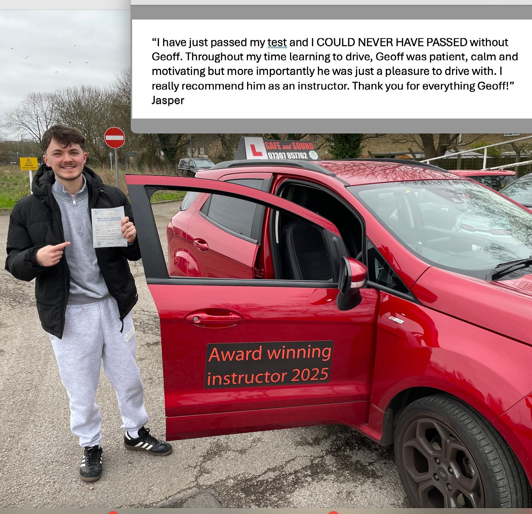 “I had my driving test yesterday evening with driving instructor (sic) Jeff, he was so professional and kind I was incredibly nervous, thank you so much (I passed)”