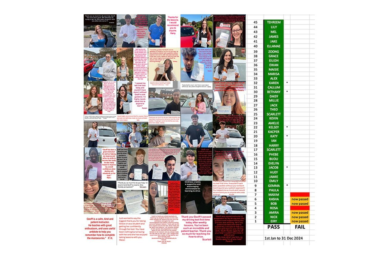 “Anyone that has had the pleasure of meeting him knows how genuinely lovely he is! He put me at ease from the very start of the test and fully explained everything that was going to happen during the test. I actually enjoyed my test and that was all thanks to Geoff!”