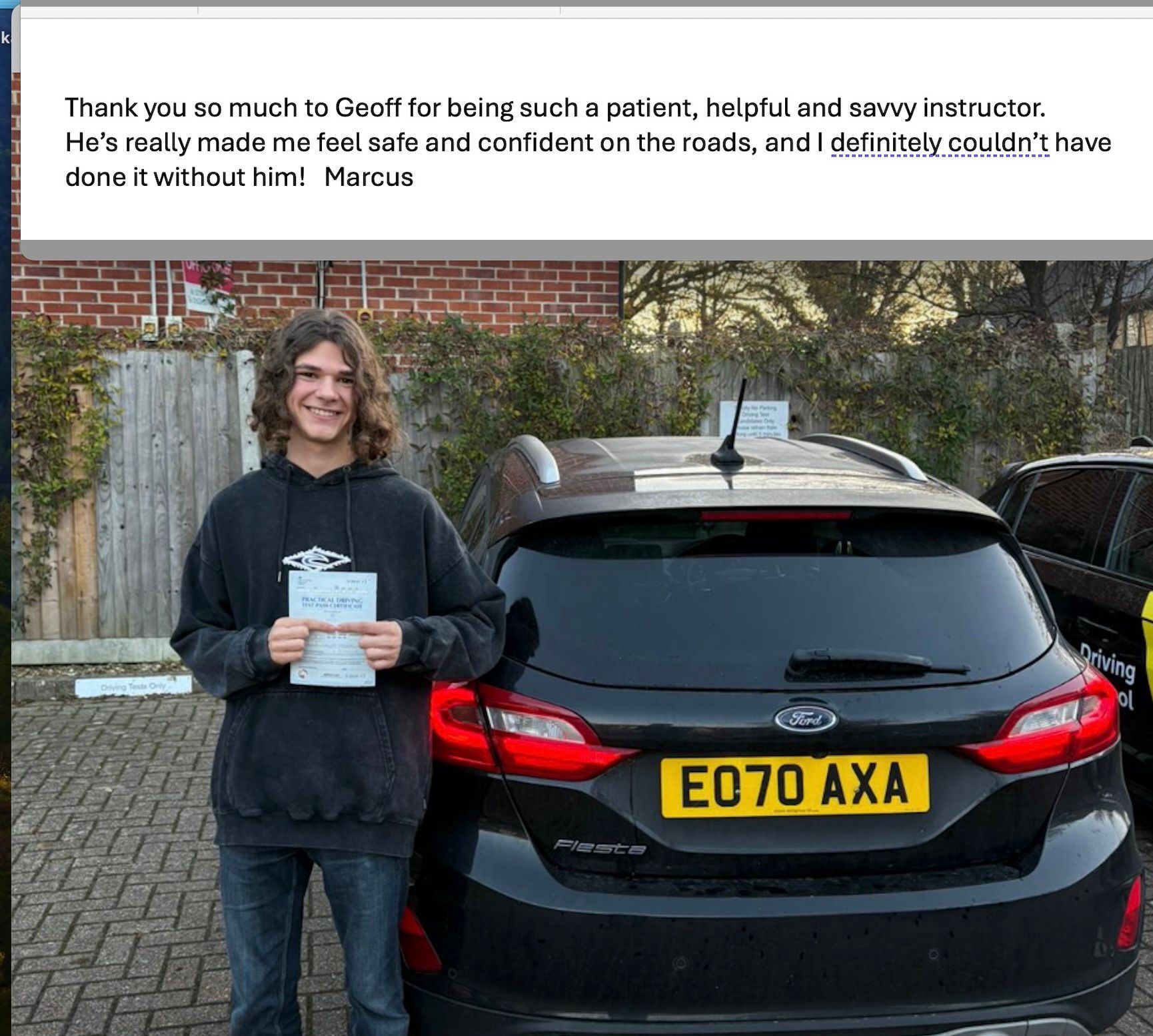 “Driving has always been a bit of an ordeal for me and I was super nervous before my test. Geoff was amazing at putting me at ease and very fair. Thank you Geoff!"